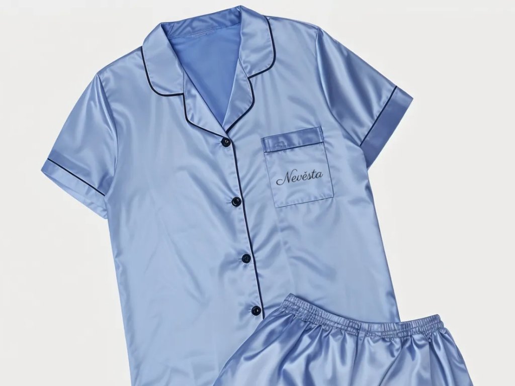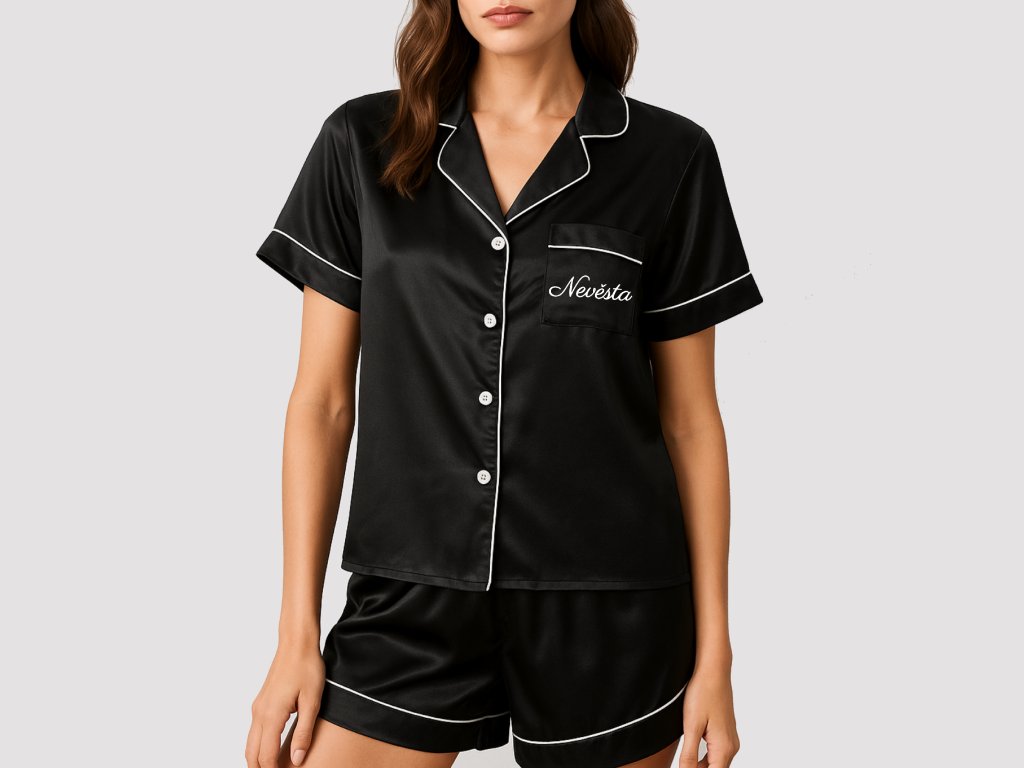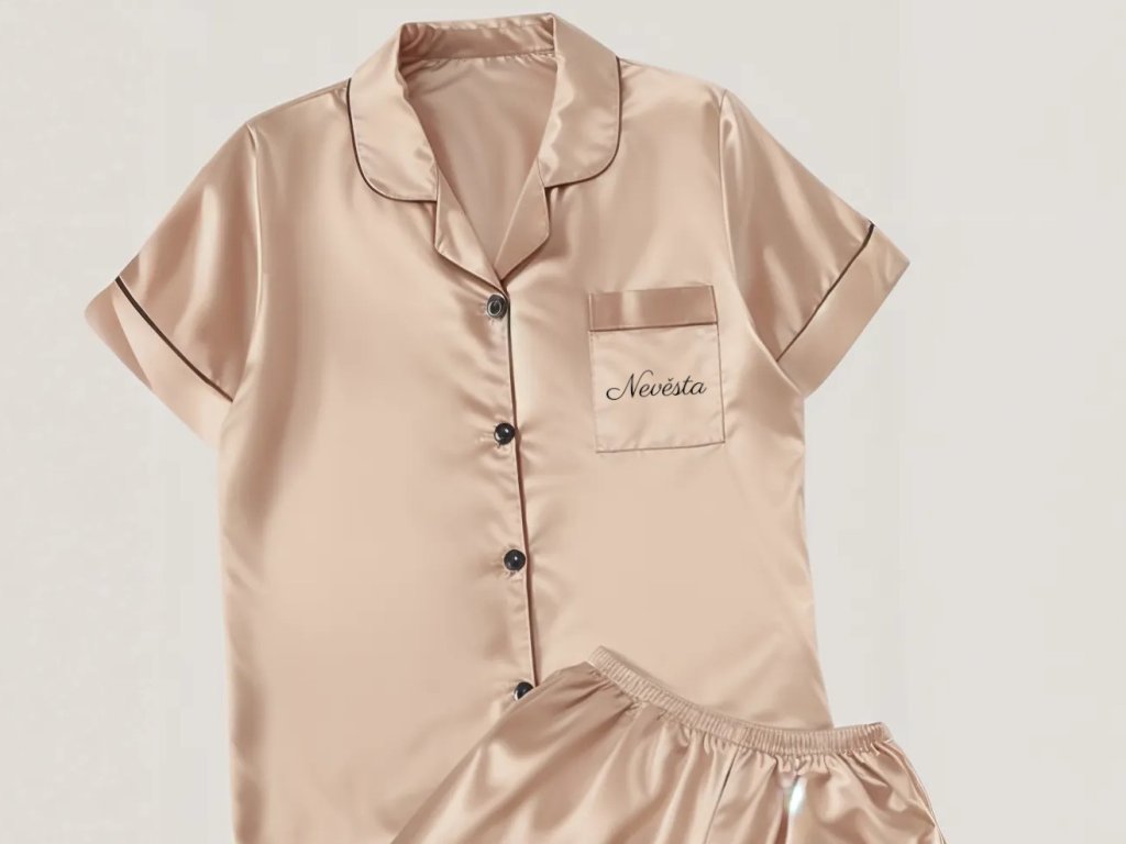 Saténové pyžámko je krásným doplňkem při přípravách nevěsty na velký den. Nádherně vypadá na fotkách a videích z rozlučky se svobodou nebo zákulisních svatebních příprav.