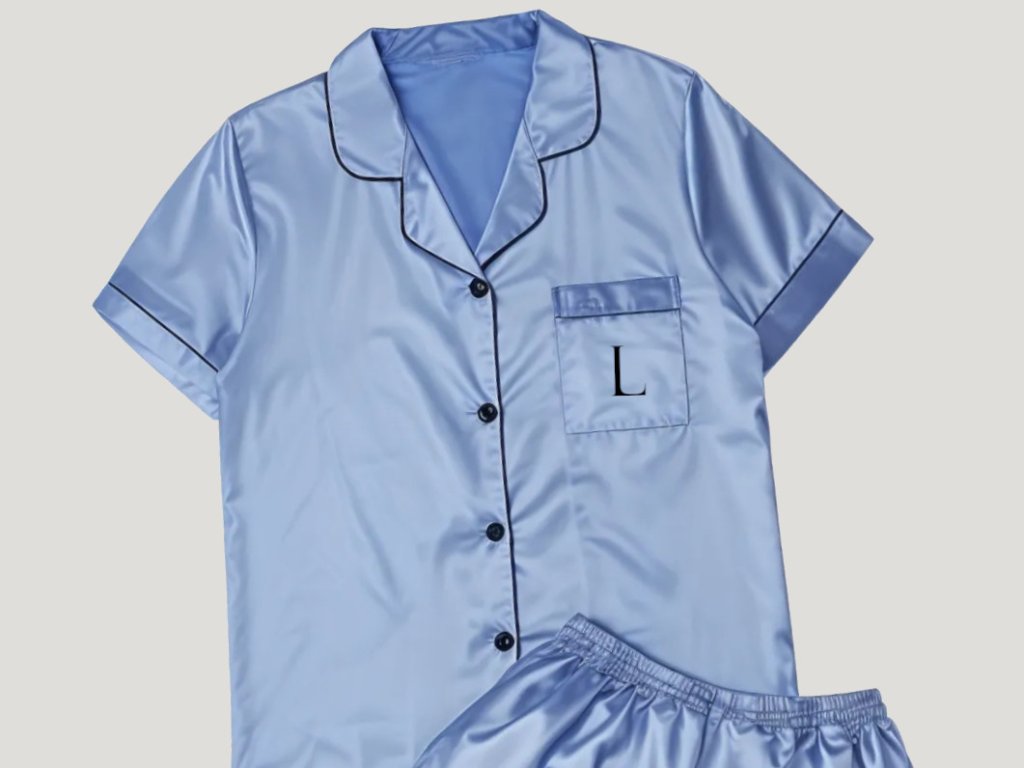 Luxusní saténové pyžamo s vlastním monogramem vhodné pro pohodlný spánek i dámskou jízdu či rozlučku se svobodou. Hebký materiál je maximálně příjemný na těle a dodává elegantní a smyslný vzhled.